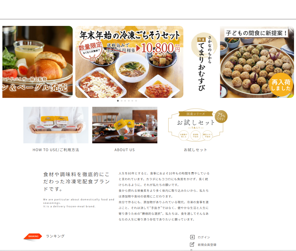 冷凍惣菜を自宅に届けてくれるフードサービスです。