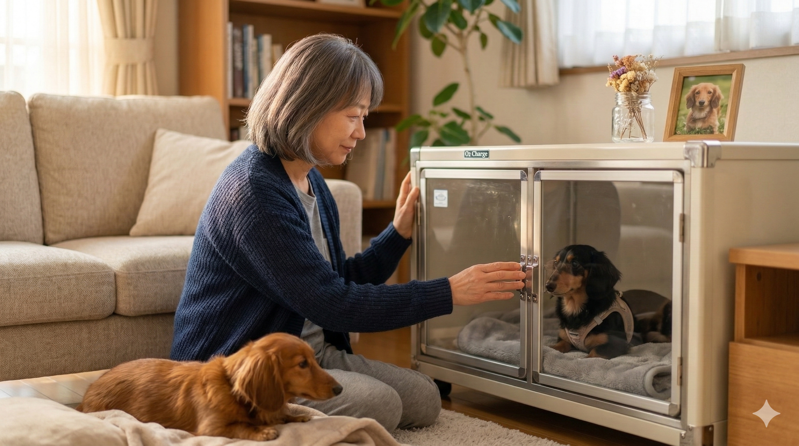 私たちが50代になり、自身の健康や将来のライフスタイルを見直すのと同じように、犬たちの「老後」もまた、飼い主の決断にかかっています。私が今回、今までにない選択として導入したのが「O2チャージ(ペット用酸素室)」でした。